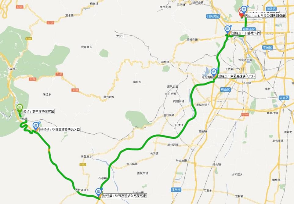 【3】 8:30-12:30行经108国道、红井路至十度,行程约150km,时间约5h。